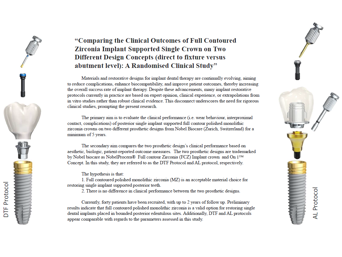 Dr Anny Huang Comparing the Clinical Outcomes of Full Contoured Zirconia Implant Supported Single Crown on Two Different Design Concepts (direct to fixture versus abutment level): A Randomised Clinical Study