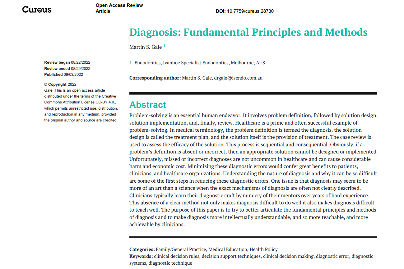 Dr Martin Gale (September 03, 2022) Diagnosis: Fundamental Principles and Methods. Cureus 14(9): e28730. DOI 10.7759/cureus.28730